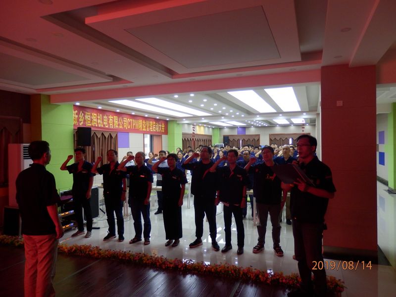 而后顧問師對(duì)精益管理的內(nèi)容進(jìn)行詳細(xì)的講解,隨后全體員工進(jìn)行了宣誓儀式,總經(jīng)理講話并宣布新鄉(xiāng)市恒潤機(jī)電有限公司CTPM精益管理項(xiàng)目正式啟動(dòng)。